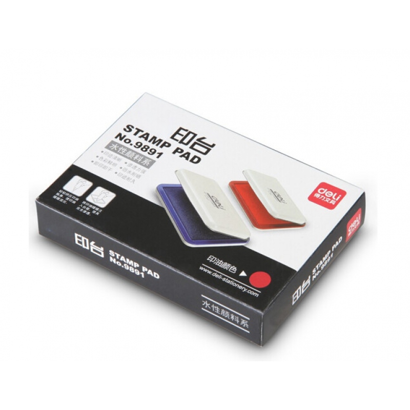 商品名稱:得力9891方形秒干印臺紅色鐵盒