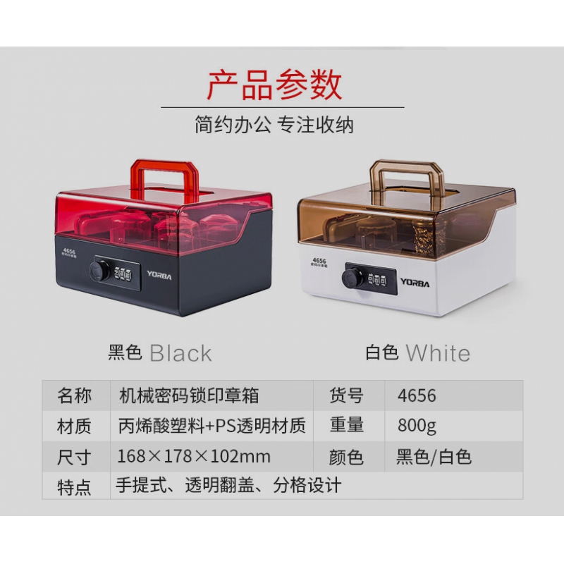 商品名稱(chēng):優(yōu)必利4656手提印章盒機(jī)械密碼鎖透明翻蓋公章箱