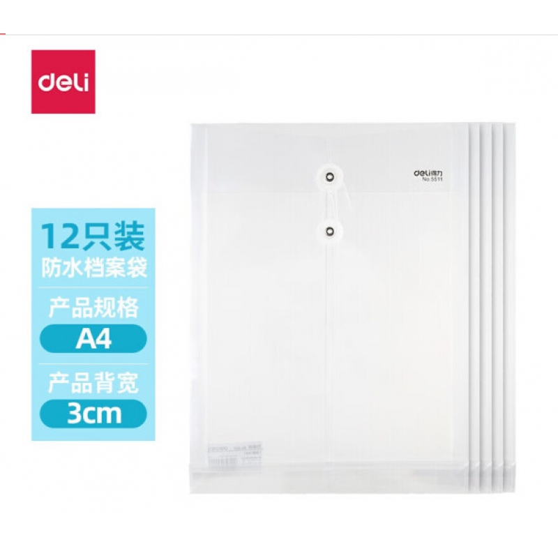 得力5511繩扣透明檔案袋A4