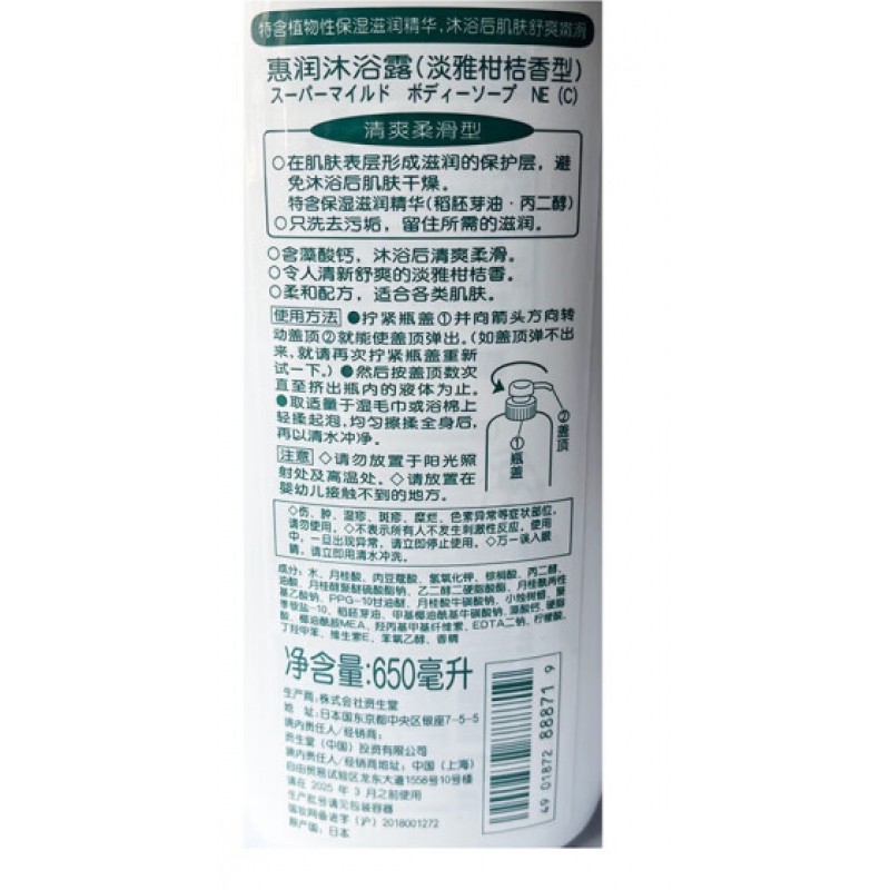 商品名稱:惠潤沐浴露淡雅柑橘香型650ml