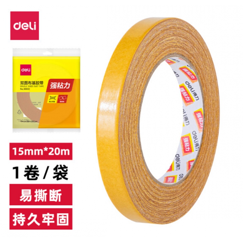 商品名稱:得力30802雙面布基膠帶15mm*20m棕色