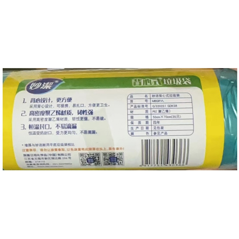 商品名稱:妙潔背心式垃圾袋50*70cm,20只/卷