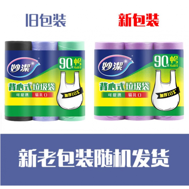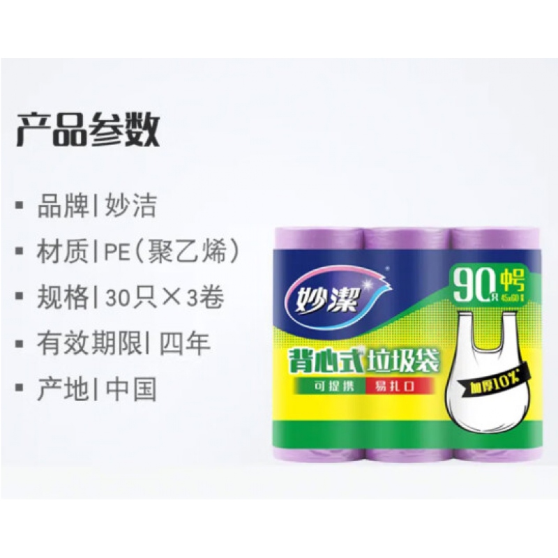 妙潔背心式垃圾袋45*60cm,30只*3卷/包