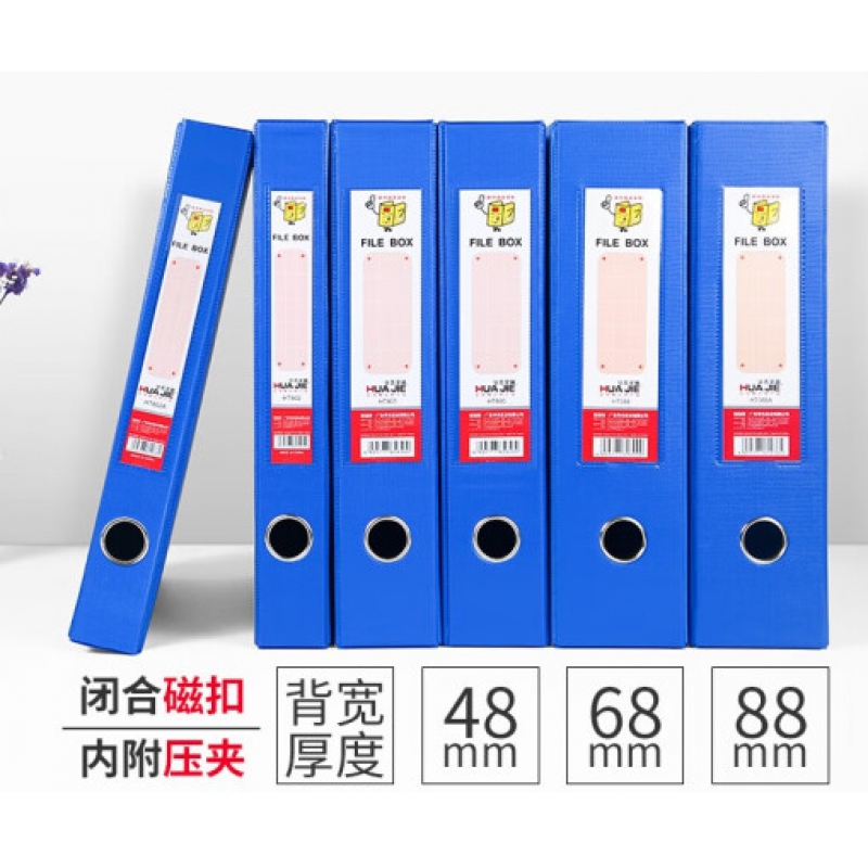 商品名稱:華杰HT801PVC紙板無夾磁扣檔案盒藍(lán)色(背寬68mm)