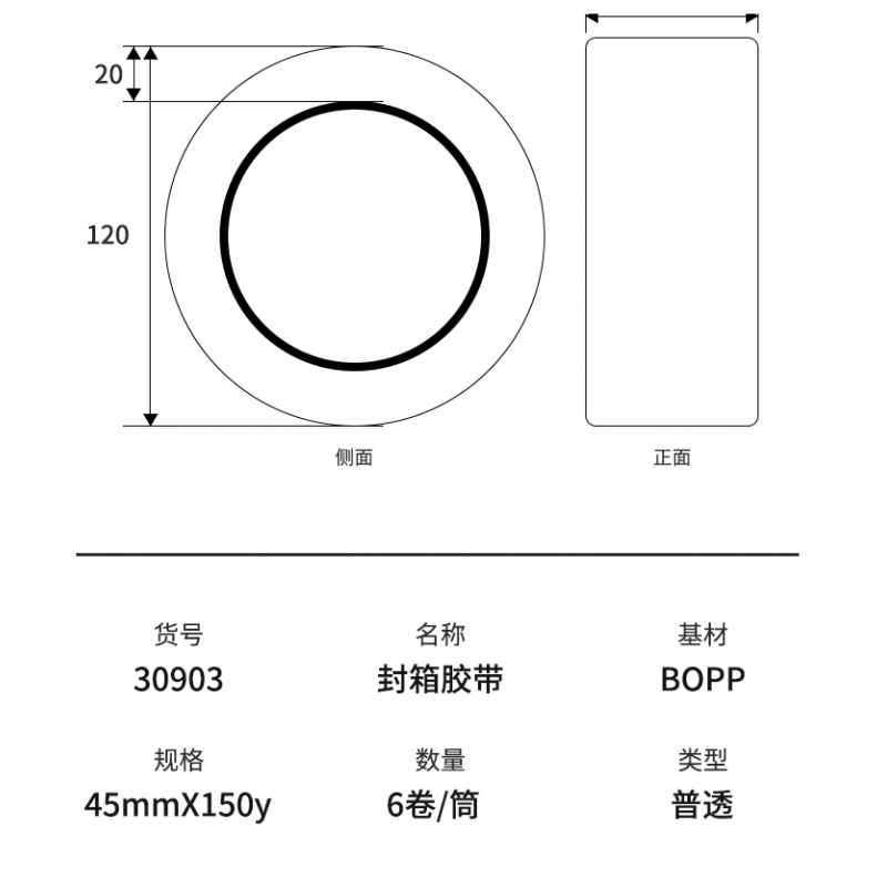 商品名稱:得力30903封箱膠帶45mm*150y(6卷/筒)