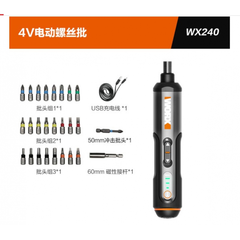 威克士WX240充電式鋰電電動螺絲刀彩虹批頭工具套裝