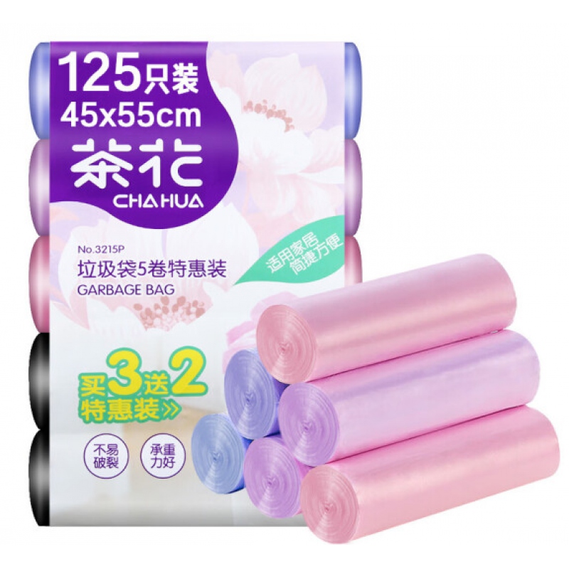 茶花3215P點斷式平口垃圾袋45*55cm(5卷/包)