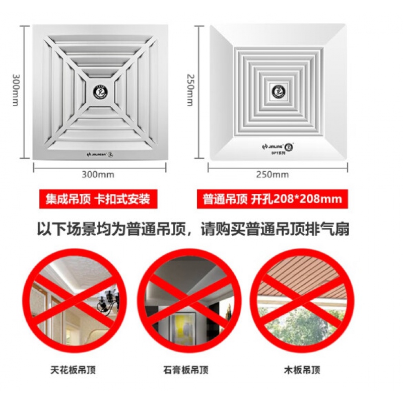 商品名稱:金羚BPT10-22-1D集成吊頂排氣扇300*300mm(面板尺寸)