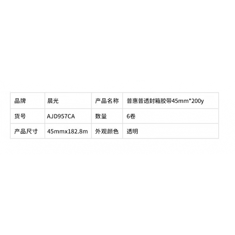 商品名稱:晨光AJD957CA普透封箱膠帶45mm*200y