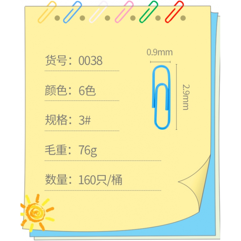 商品名稱:得力0038彩色回形針筒裝29mm(160枚/筒)